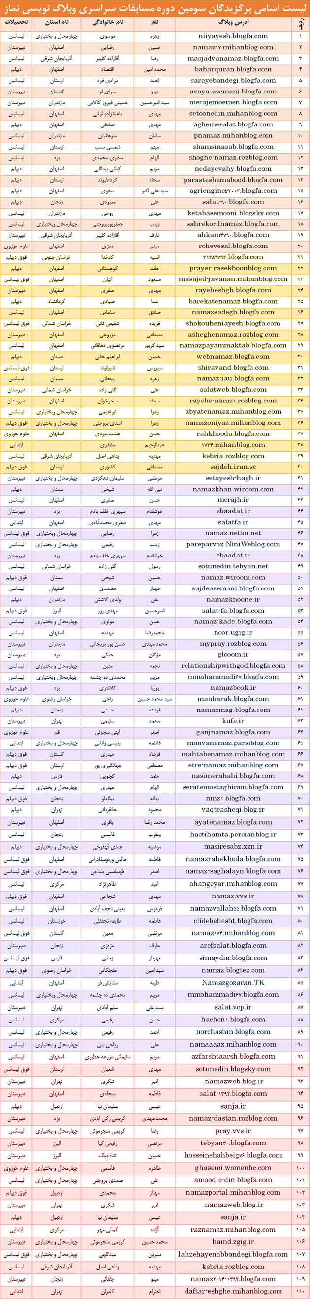 برندگان مسابقه وبلاگ نویسی نماز
